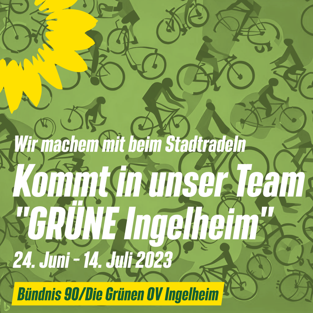 Das Stadtradeln findet dieses Jahr zum zwölften Mal in Ingelheim statt und der Grüne Ortsverband wird wieder mit einem eigenen Team vertreten sein.