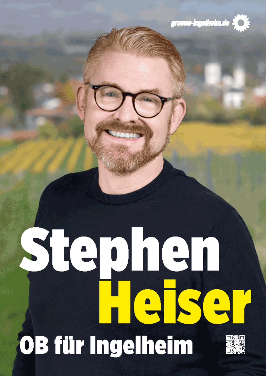 Unsere Mitglieder von BÜNDNIS 90/DIE GRÜNEN Ingelheim haben Stephen Heiser zum Kandidaten für die Oberbürgermeisterwahl am 22. März 2026 gewählt. Der 44-jährige Architekt und Ingelheimer Stadtrat wurde einstimmig bei einer Enthaltung gewählt.